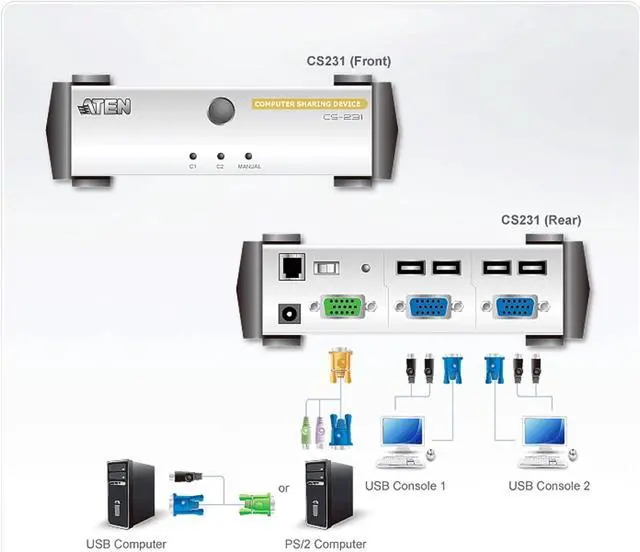 ATEN 2-Port Computer Sharing Device (USB) CS231 (Silver)
