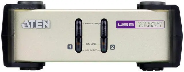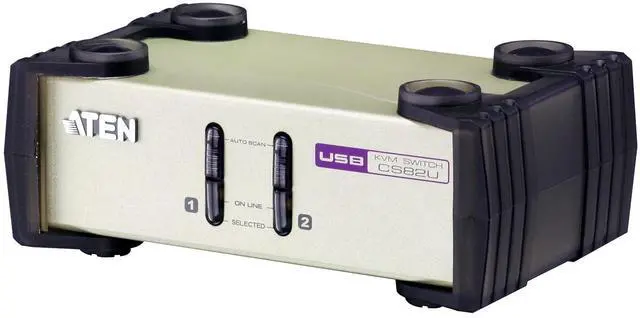 The CS82U PS/2-USB KVM Switch is a desktop control unit that allows users to access two computers from a single KVM console (PS/2 or USB keyboard and mouse, and VGA monitor)