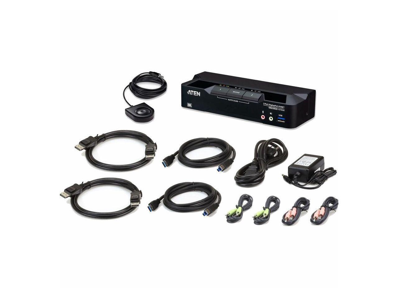 ATEN 2-Port USB 3.0 8K DisplayPort KVMP Switch (Cables included) - 2 Computer(s) - 8K - 7680 x 4320 - 1 x Network (RJ-45) - 6 x USB - USB 2.0 - 3 x DisplayPort