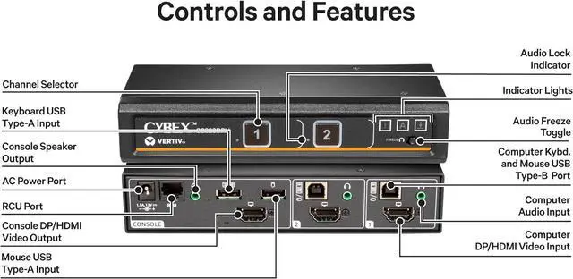 The Cybex SC800 switch presents users with the widest array of video connections in the industry, including Universal Display, DVI-I, Display Port, and HDMI. Resolution up to UHD 4k at 60Hz delivers extremely high accuracy, with video playing at the highest possible definition.