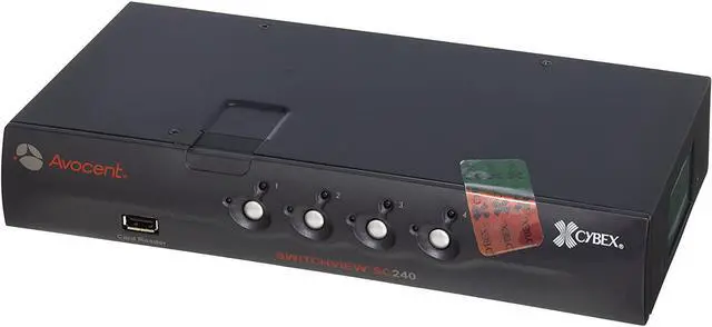 General Information ManufacturerAvocent Corporation Manufacturer Part NumberSC240-001 Manufacturer Website Addresswww.avocent.com Product NameSwitchView SC240 4-Port KVM Switch Product TypeAnalog KVM Switch Technical Information Number of Computers4 Number of Users1 Video SignalsQXGA Graphics Resolution2048 x 1536 @ 85Hz Maximum Physical Characteristics Form FactorDesktop Dimensions1.72" Height x 10.36" Width x 5.68" Depth Weight2.3 lb Warranty Standard Warranty2 Year