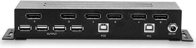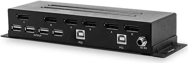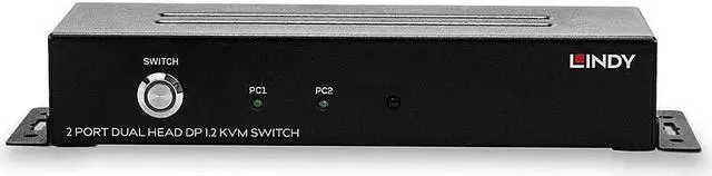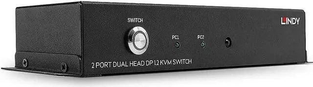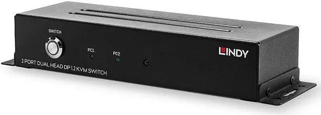 A KVM switch allows users to easily control multiple computers from a single console (keyboard, mouse and display). Dual Head KVM Switches support two AV channels so that computers with two simultaneously used AV ports (e.g. in extended desktop mode) can control two displays via the switch. The Lindy 2 Port Dual Head DP 1.2 KVM Switch provides a powerful, compact solution for accessing and controlling two DisplayPort equipped dual-head PCs with a single keyboard, mouse and 2 display set. Four USB 2.0 ports allow seamless connection and sharing of USB peripherals and storage devices between both host PCs. Supporting high video resolutions up to 3840x2160@60Hz on two displays at the same time, this switch is ideal for the most demanding tasks such as computer-aided design, video editing, rendering and much more, which is only possible thanks to its ability to output a combined resolution of 7680x2160. The support of a wide range of USB devices ensures maximum compatibility with existing keyboards, mice, headsets, printers and more, so integration of the switch into existing environments is completely easy. DisplayPort connectors instead of fixed cables leave the user to use the existing wiring at appropriate length, providing flexibility and variety of applications. Installation in new or existing systems is straightforward, thanks to the small form factor and pre-installed mounting hardware. A lockable DC power connector common in industrial environments provides protection against accidental disconnection of the power supply, ideal for function-critical medical systems or manufacturing applications. Please note: connection cables are not included.