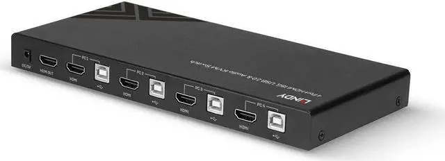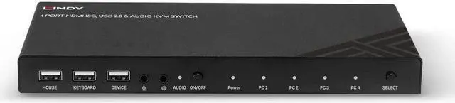 A KVM switch allows an operator to conveniently control and manage multiple devices, such as PCs and servers, from a single keyboard, mouse and display console. The Lindy 4 Port HDMI 18G, USB 2.0 & Audio KVM Switch is a compact solution for providing access and control over four HDMI equipped PCs from a single keyboard, mouse and monitor setup. Support for resolutions up to 4K Ultra HD 60Hz ensures the highest image quality, perfect for demanding graphical content in gaming setups, video editing or quad system control workstations. The additional support for High-Dynamic Range ensures video content can be seen with enhanced brightness, greater contrasts and a much wider colour gamut. The audio output ports on the main unit also allow users to connect headphones or speakers to add immersive 2CH audio and a microphone, pressing the Audio On/Off button on the front panel mutes these devices. These ports are not connected to the HDMI signal but to a built-in USB converter while an additional USB device such as a printer, scanner or hard drive can be connected to the additional USB port on the front panel. The KVM switch features two switching options including push buttons on the unit and keyboard hotkeys provide simple, reliable control for the user, great for both professional and first time users.