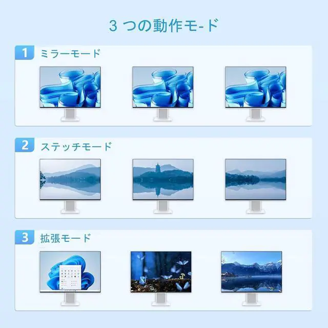 Flexible Multi-Monitor Setup 2 Computers Button switching Three display modes USB 3.0 Port