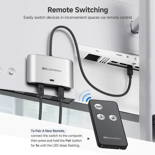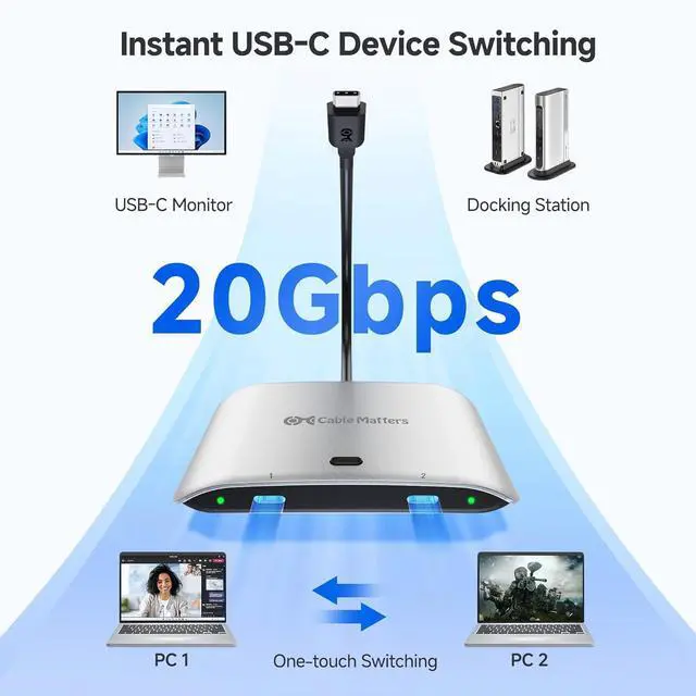 Cable Matters 20Gbps USB C Switch for 2 Computers, Supports Up to 8K@30Hz on Windows, 4K@60Hz on macOS, 140W PD, for Sharing a USB-C/Thunderbolt 4 Monitor or Dock, Works with Thunderbolt 4/5 Laptops