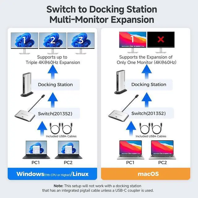 8K Video Resolution Support: Experience stunning 8K video output at 30Hz, delivering exceptional clarity and color accuracy for both professional and entertainment use. Supports up to 8K@30Hz / 5K@60Hz / 4K@144Hz on Windows, and 4K@60Hz on macOS when connected to a single USB-C or Thunderbolt 4 monitor. Compatible with popular models including Dell UltraSharp U3224KB, U3425WE, U2723QE, U4025QW, U2720Q, Dell S2722QC, HP E27m G4 QHD USB-C Monitor, HP Z43 42.5-inch 4K UHD Display, HP Z32