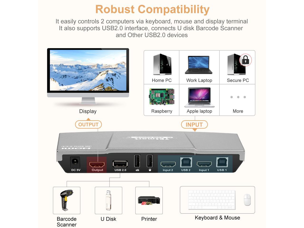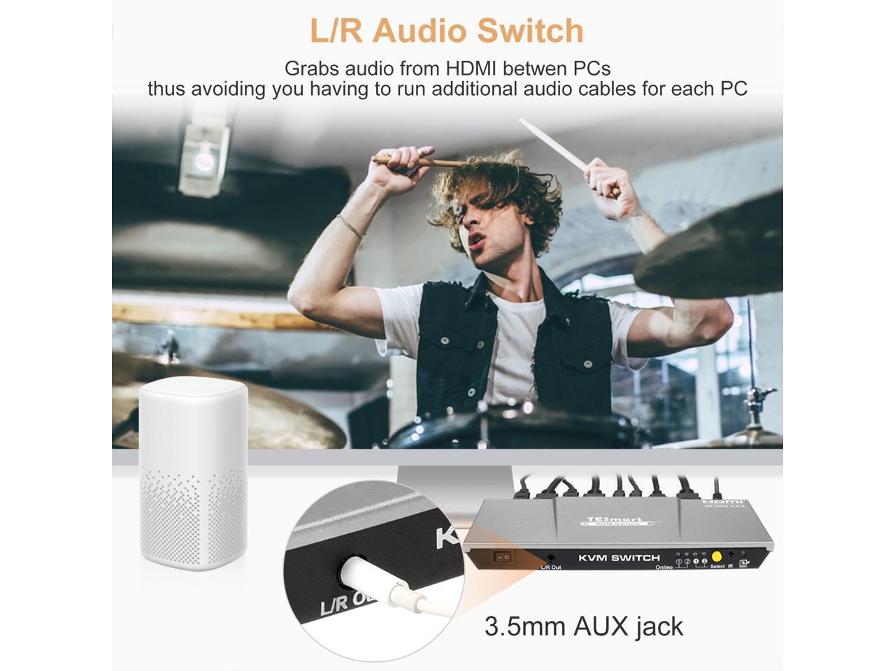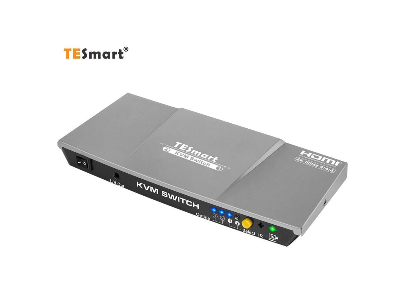TESmart HDMI KVM Switch 2 ports 2 in 1 out , support 4k 3840*2160@60Hz 4:4:4 Support HDR 10 and Dolby Vision ,Complaint with HDCP 2.2, With USB2.0 and audio output ports