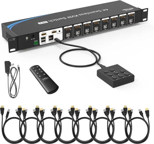 The USB 2.0 hub allows you to share USB peripherals like printer, scanner, webcam between 8 computers with data transfer; Extra USB dedicated ports are just for Hotkey switching, Includes 8x HDMI kvm cables.