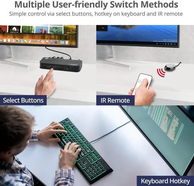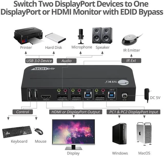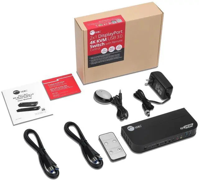 SIIG 2x1 DisplayPort 4K KVM USB 3.0 Switch with Remote Control CEKV0C11S1
