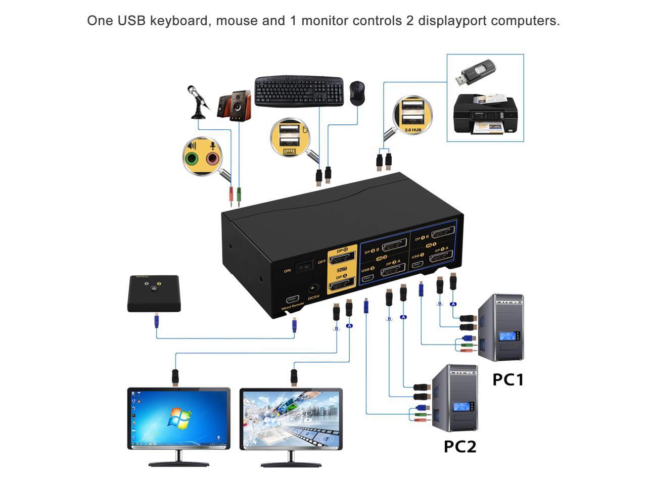 2 Port KVM Switch Dual Monitor DisplayPort 4K 60Hz, 2 Computers x 2 Monitors KVM Switch with Audio and USB 2.0 HUBS DP 1.2 622DP
