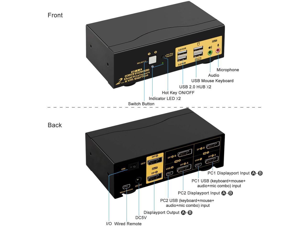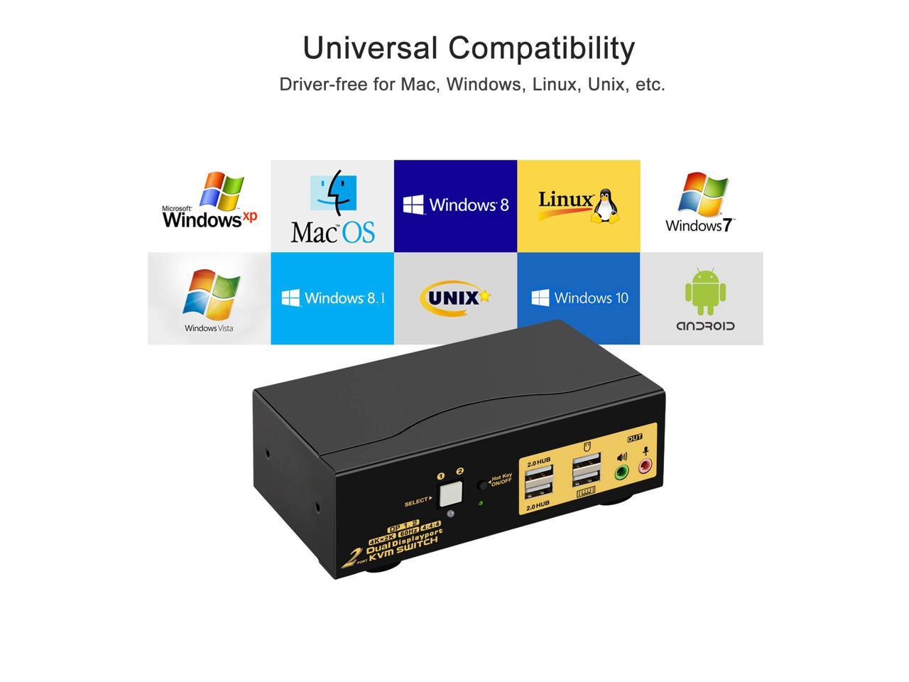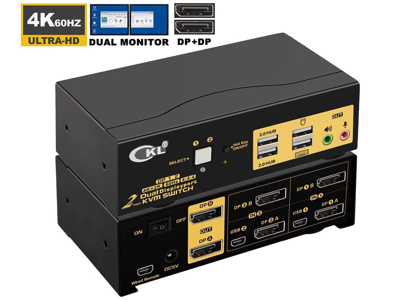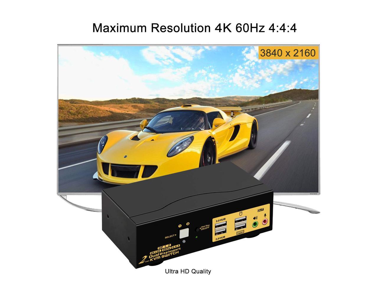 - Dual MONITOR KVM SWITCH 4K 60Hz 4:4:4 Conforms to DP 1.2 standard for resolution up to 4096x2160@60Hz, 3840x2160@60Hz and downwards; Resolution is subject to adapter if used any; Make sure to use reliable adapters to avoid display issue.
