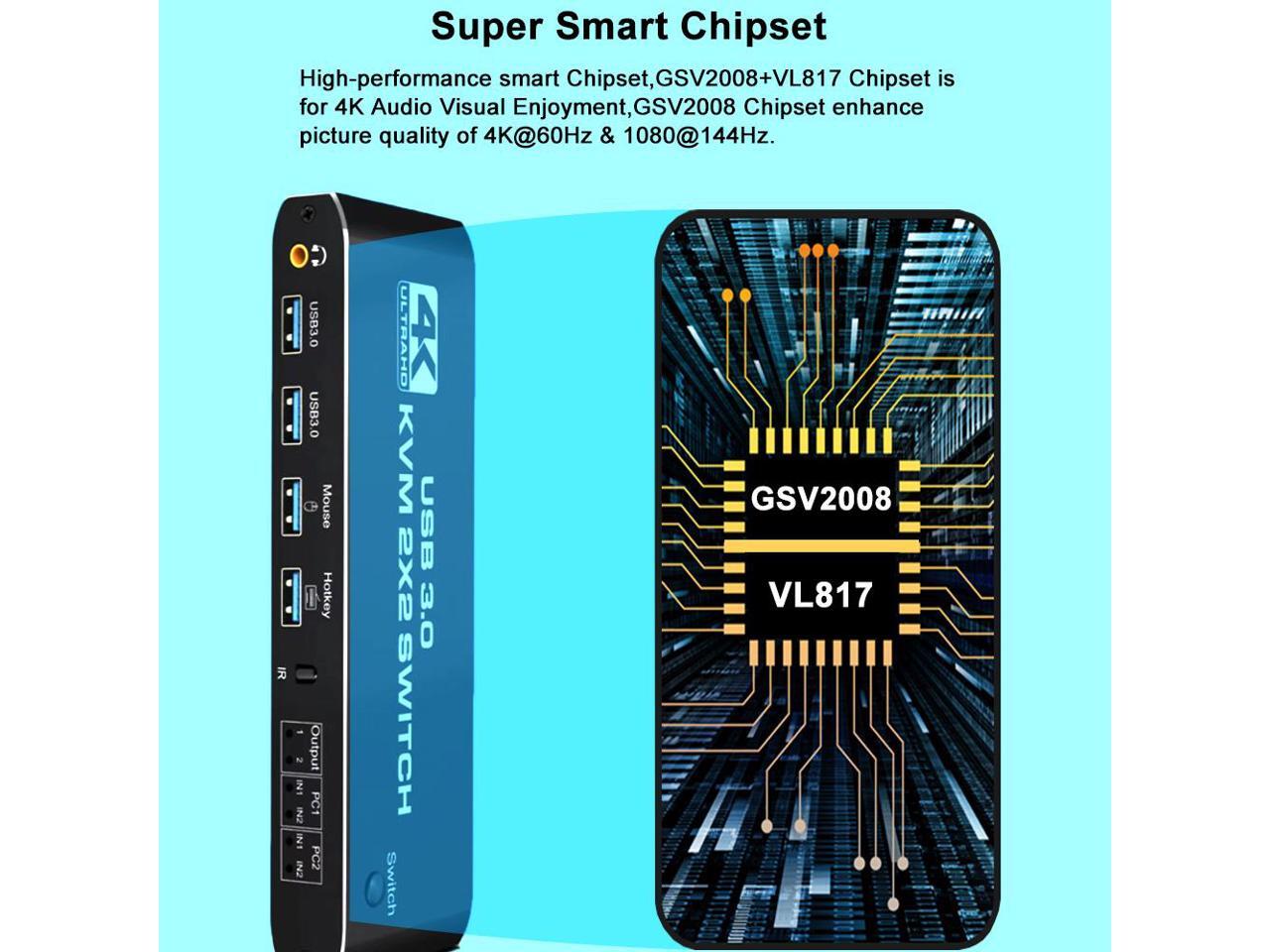 - [UHD 4K Visual Enjoyment] The kvm switch supports HDMI 2.0 and standard HDCP 2.2. Support max resolution up to 4K@60Hz,1080@144Hz, also support 1080P@120Hz or lower resolution