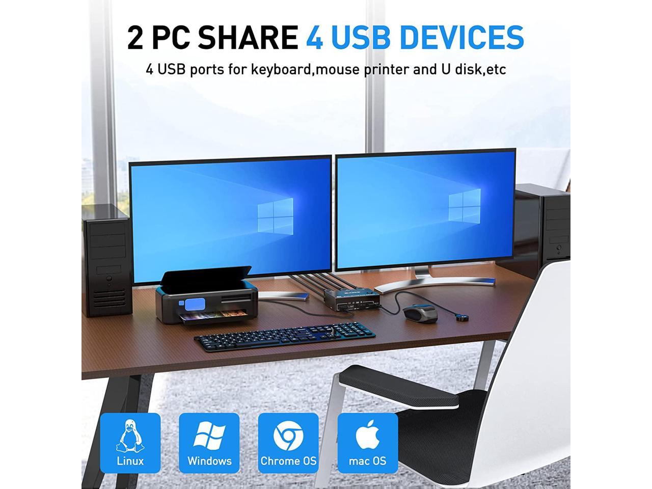- [with 4 USB 2.0 Ports] Dual monitor Displayport USB switch with 4 integrated USB 2.0 ports which can recognize keyboard,mouse,printer,scaner and other USB devices.