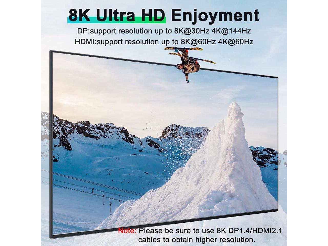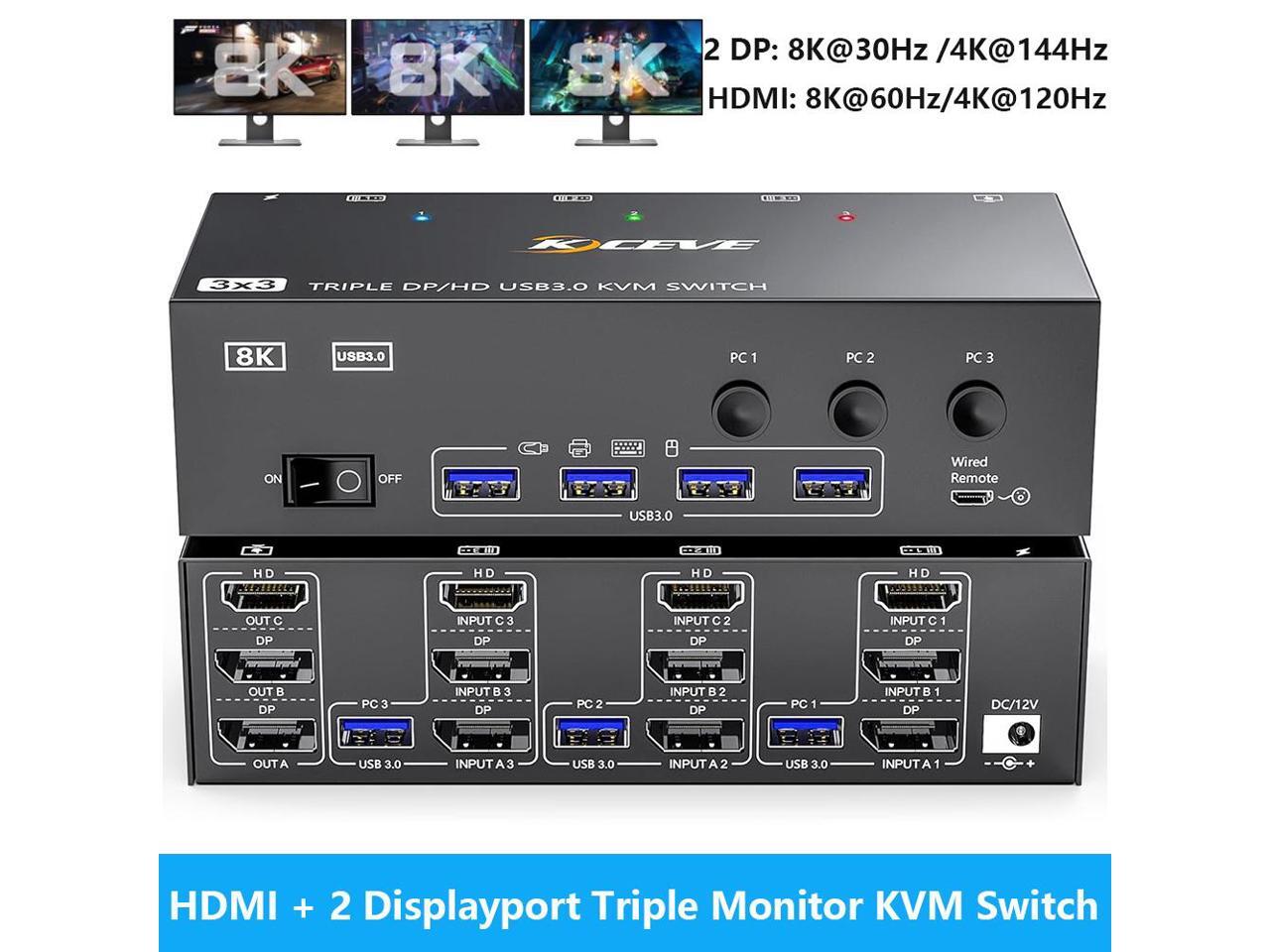 IHDAPP KVM Switch 3 Monitors 3 Computers 8K@60Hz, HDMI + 2* Displayport Triple Monitor KVM Switch with 4 USB 3.0 Ports for Keyboard Mouse Printer, Wired Remote, USB Cable and Power Adapter Included