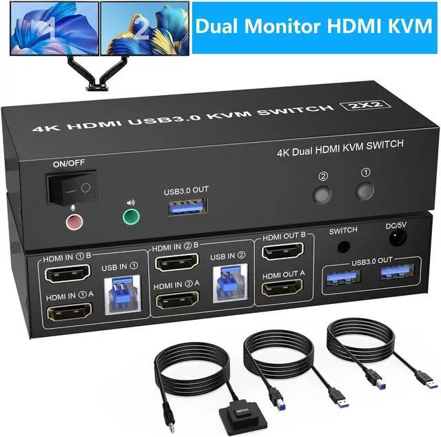 USB 3.0 Dual Monitor HDMI KVM Switch for 2 Computers 2 monitors