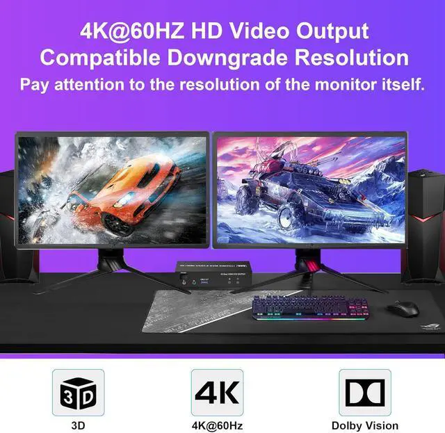 - Dual monitors output support up to 4K@60Hz for extended,mirrored or spliced display (Depends on your computer's graphics card.);