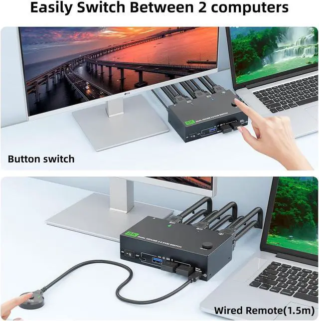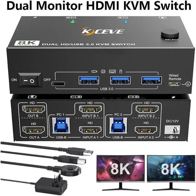 USB 3.0 Dual monitor HDMI KVM switch is specially designed for users who have 2 PCs and 2 monitors.