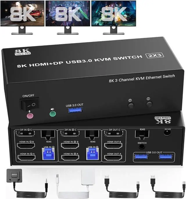 - 1x 8K Triple Monitor KVM Switch,