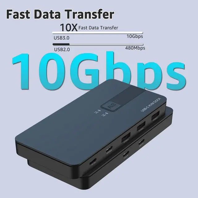 10Gbps Data Transfer: The switch supports data transfer speeds of up to 10Gbps through its 4 USB USB C 3.2 ports and is backward compatible with USB 3.0 2.0 devices, allowing file transfers in seconds between devices like USB drives and external hard drives. (The USB ports are intended for data transfer, not device charging. )