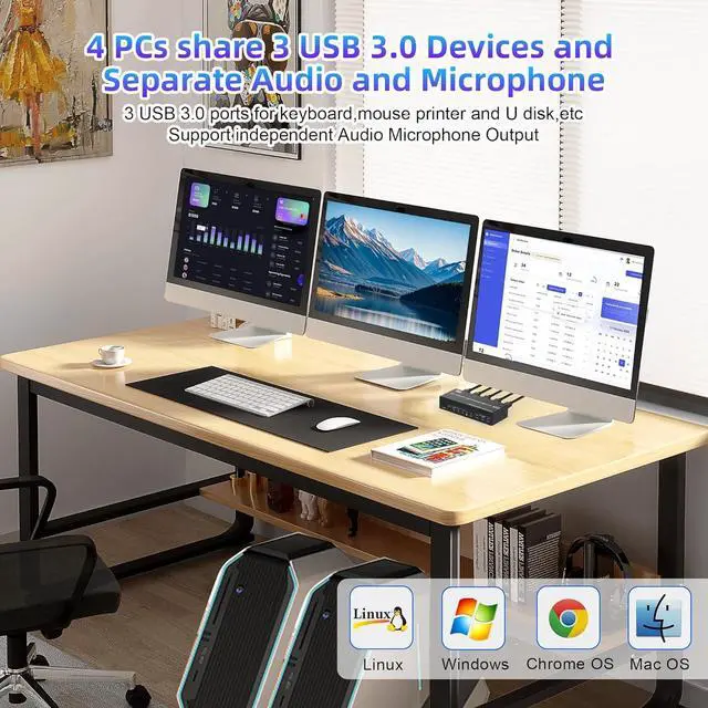 4. KVM switch with 3 USB 3.0 ports for USB devices, and with extra Audio Microphone output.