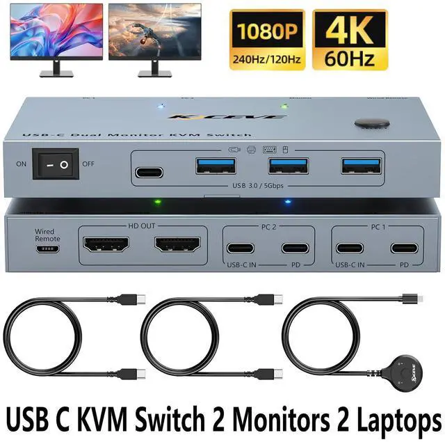 USB C KVM Switch 2 Monitors 4K@60Hz for 2 Laptops