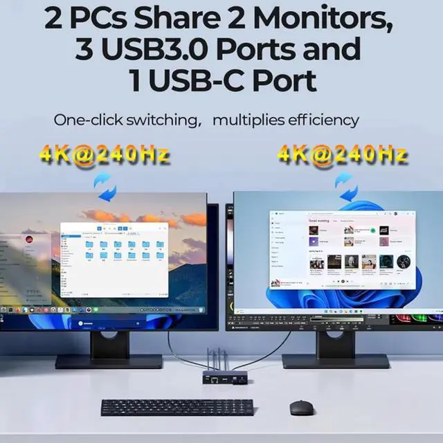 8K@60Hz HDMI KVM Switch 2 Monitors 2 Computers with 4 USB 3.0 ports (3 USB-A+1 USB-C)