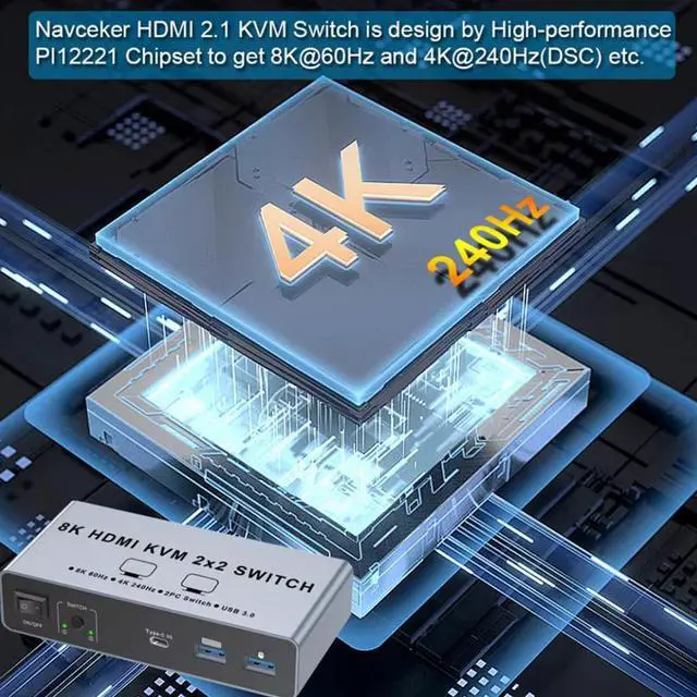 - Experience the future of visual technology with our 8K@60Hz KVM Switch, delivering crystal-clear resolution for the most immersive viewing experience.