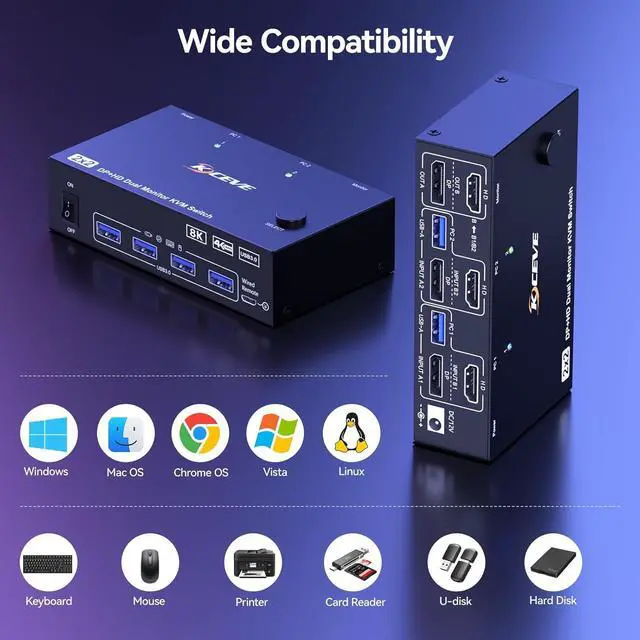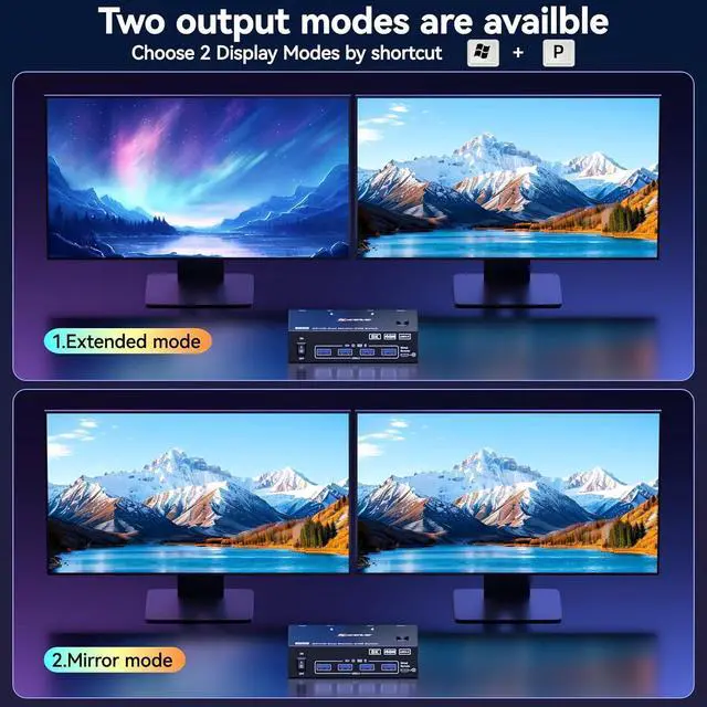 One-click easy switching between 2 computers, with 2 monitors running both PCs simultaneously. Eliminate the hassle of frequent device swapping and double your work efficiency in office or gaming setups.
