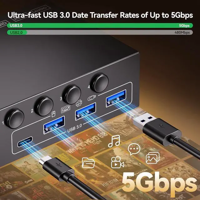 With 4 USB 3.0 ports for keybaord, mouse, U disk,support ultra-fast data transfer up to 5Gbps