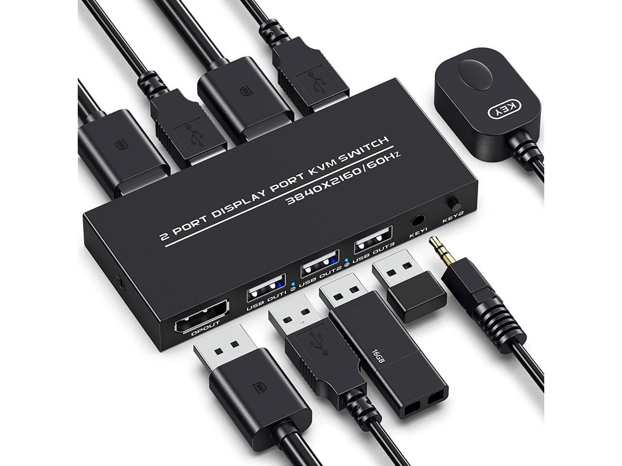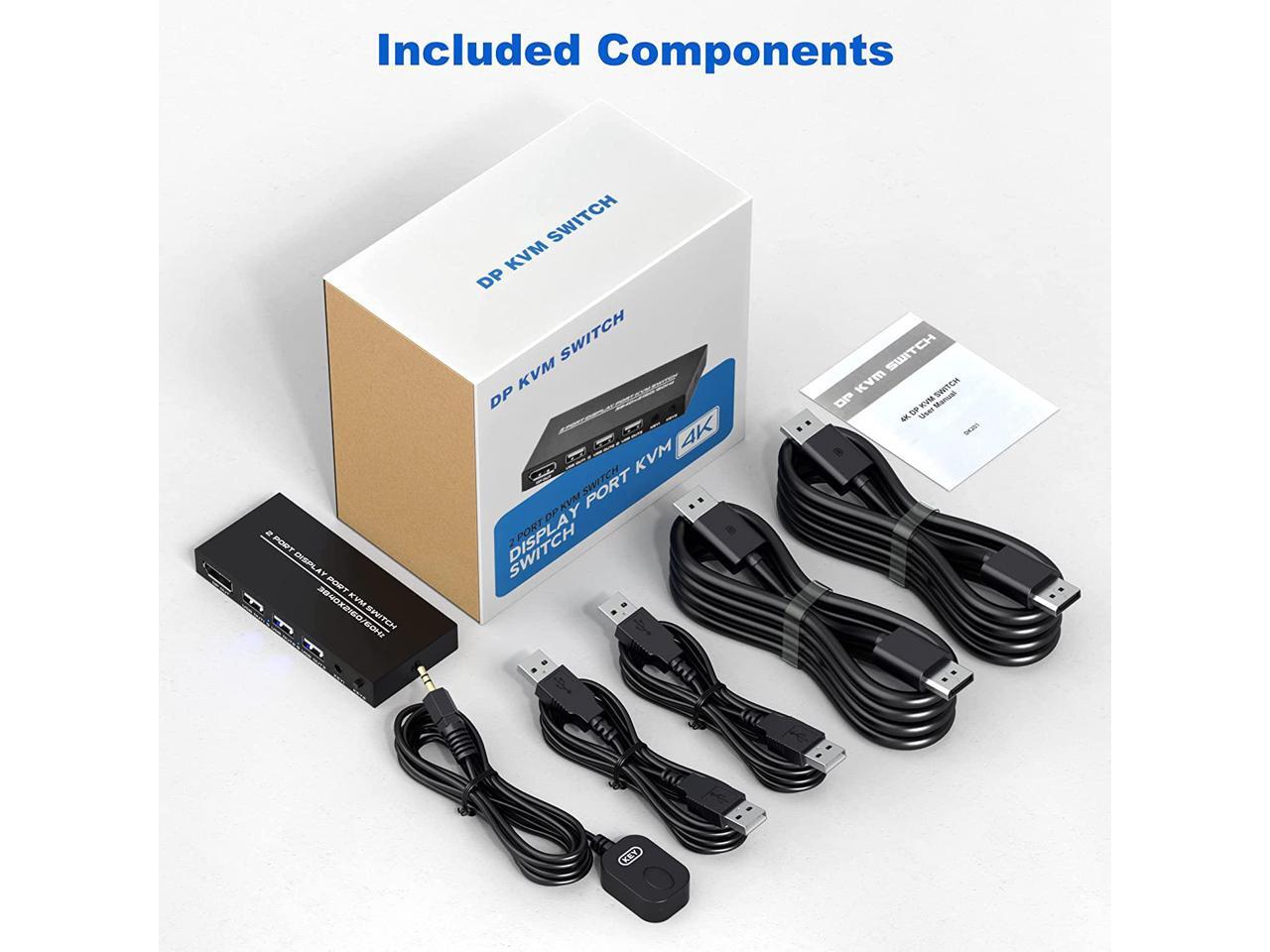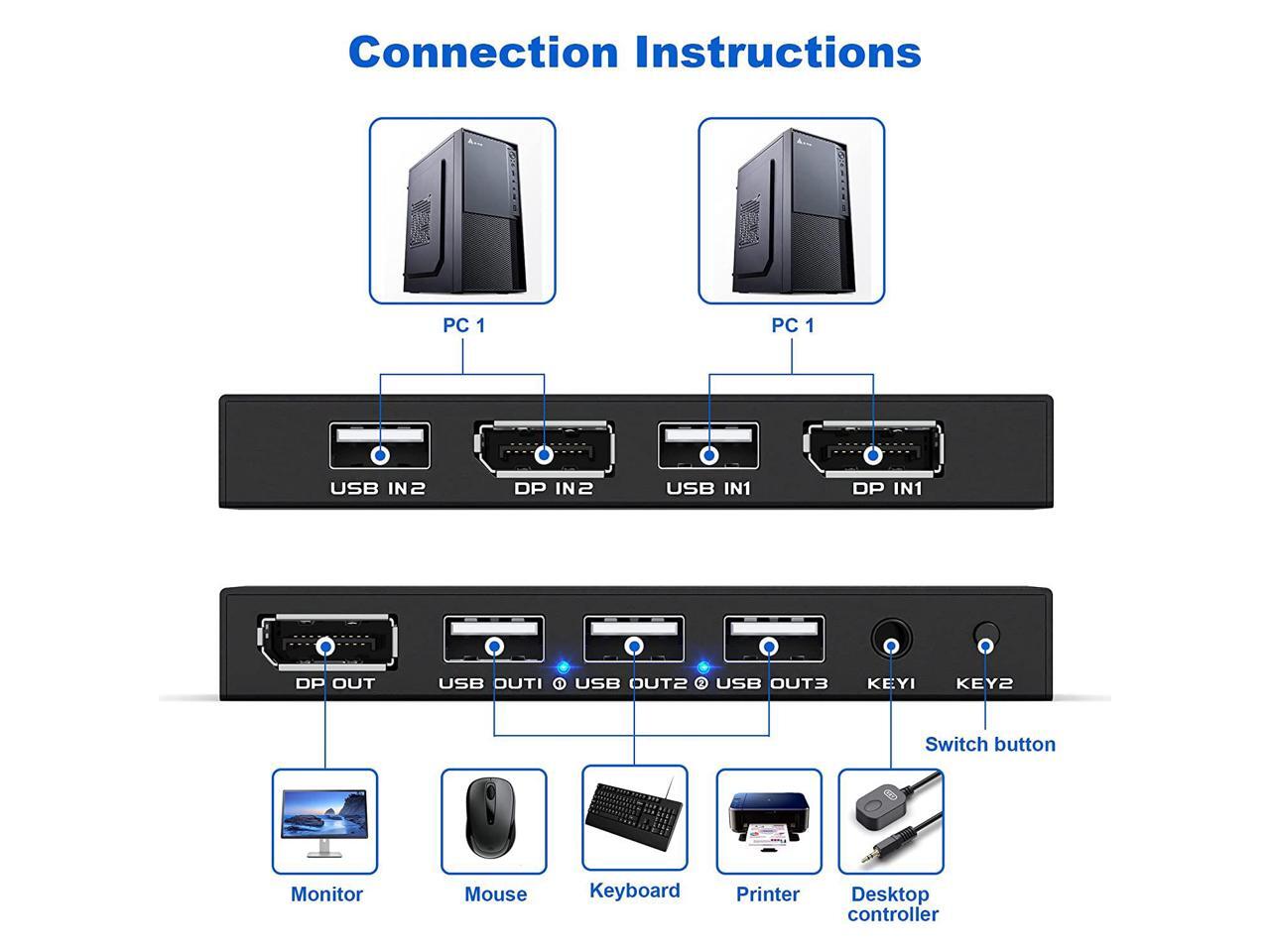 - [2 Port DisplayPort KVM Switch] The KVM switch Displayport is a displayport switch that can help you sharing one monitor and 3 USB 2.0 devices such as scanner mouse keyboard between two PCs.