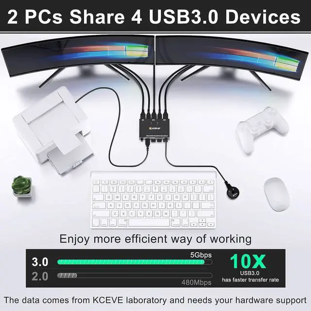 2, Two HDMI inputs for computer, laptop, TV box, DVD, PS5/4, etc. Please note that when the PS console is connected, the mouse and keyboard cannot control the game via the KVM switch.