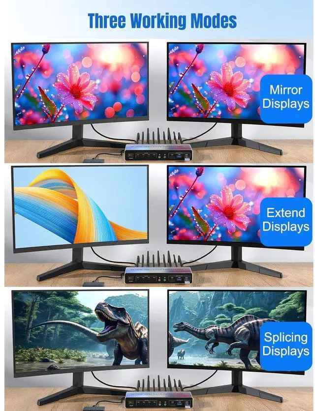 - This dual monitor HDMI KVM switch Supports maximum resolution up to 4K 60Hz YUV 4:4:4, HDCP 1.4, HDR 2.2, with EDID Emulator; Dual monitors output support up to 4K@60Hz for extended, mirrored or spliced display(Depends on your computer's graphics card.);