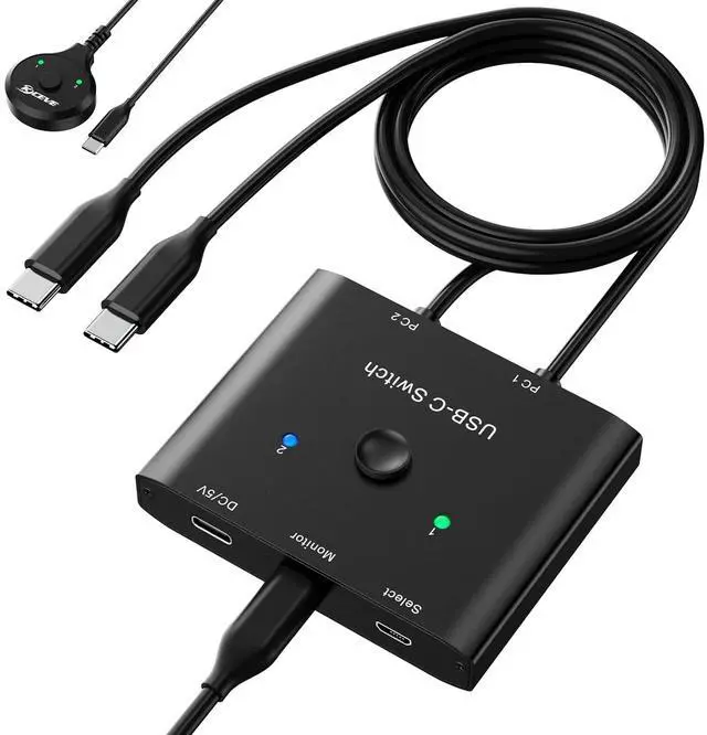 USB C Switch allows you to share 1 monitor between 2 laptops. Easily switch between two computers with just one click, without unplug or plug cables.