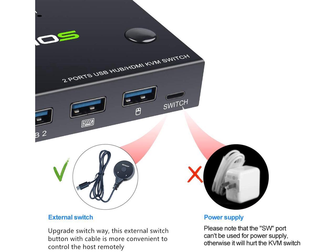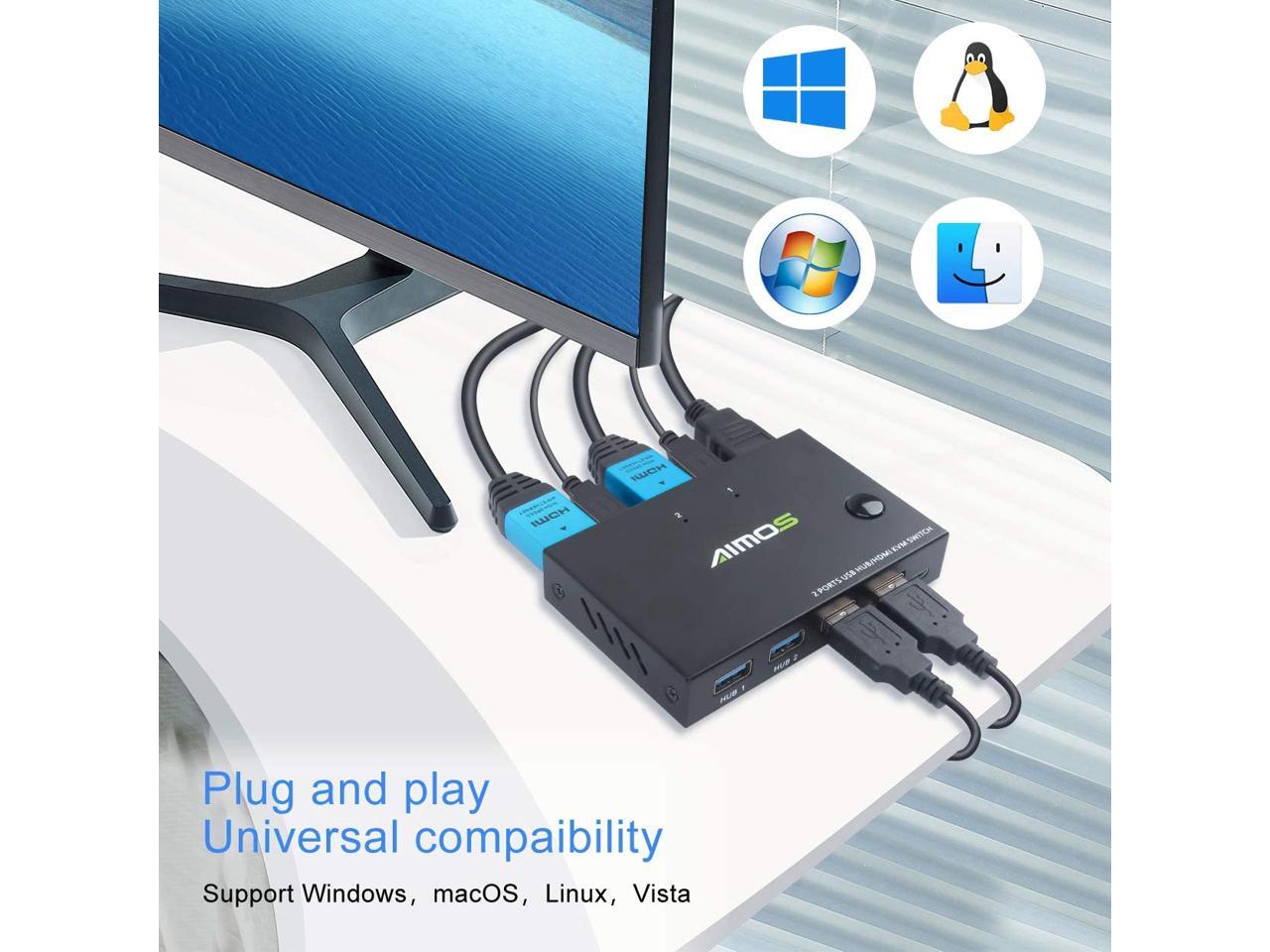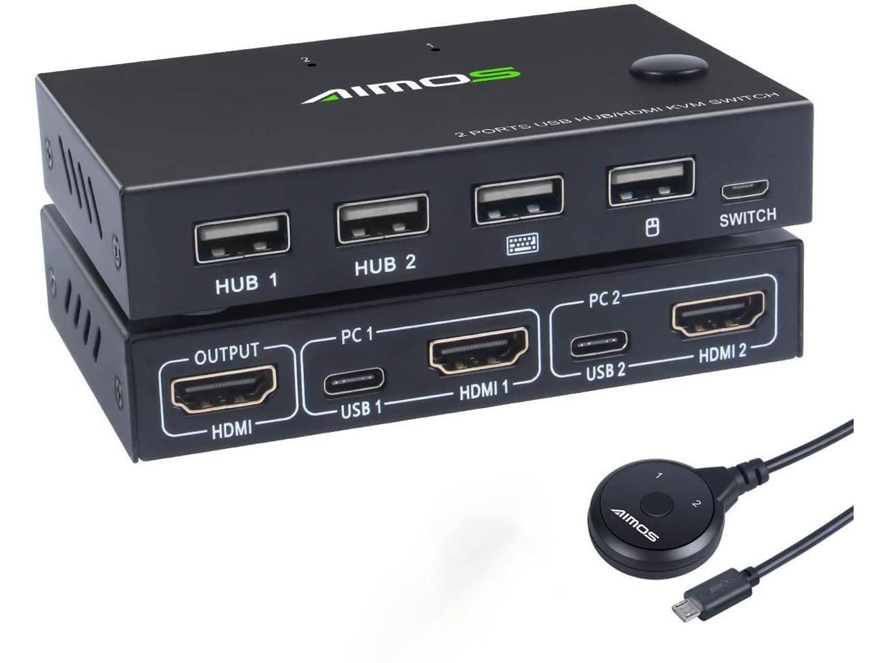 KVM Switch, USB Switch 4K HDMI Switcher Box 2 In 1 Out For 2 Computers Share Keyboard And Mouse Support 4K @30Hz, Not support Hotkey, With HUB Ports giyqxHw