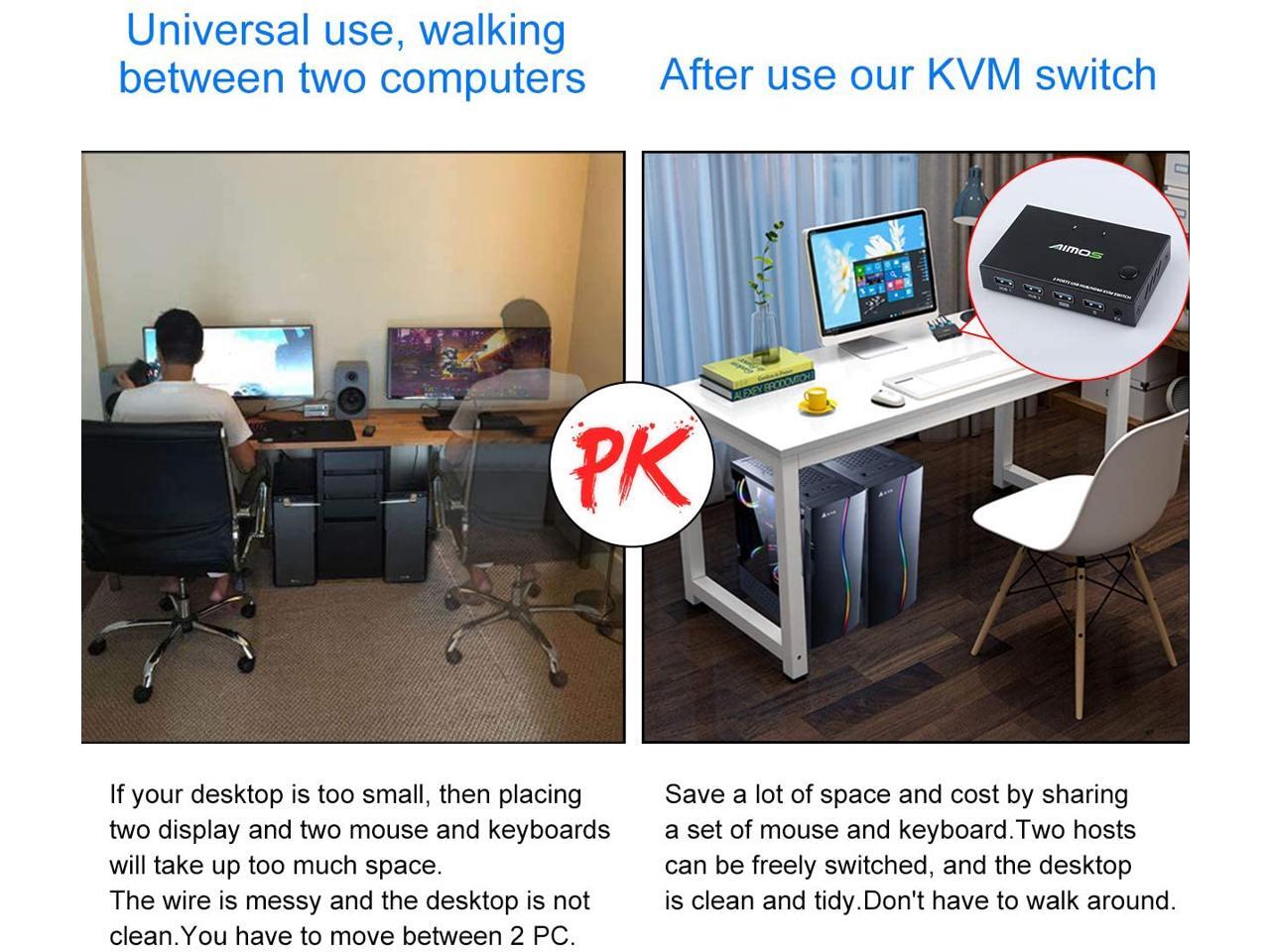 This KVM switch help you control 2 signal sources easily by only one set USB keyboard & mouse. Save space, power, and device costs, you can centrally control and manage two PC host / game consoles without having to move from one workstation to another.