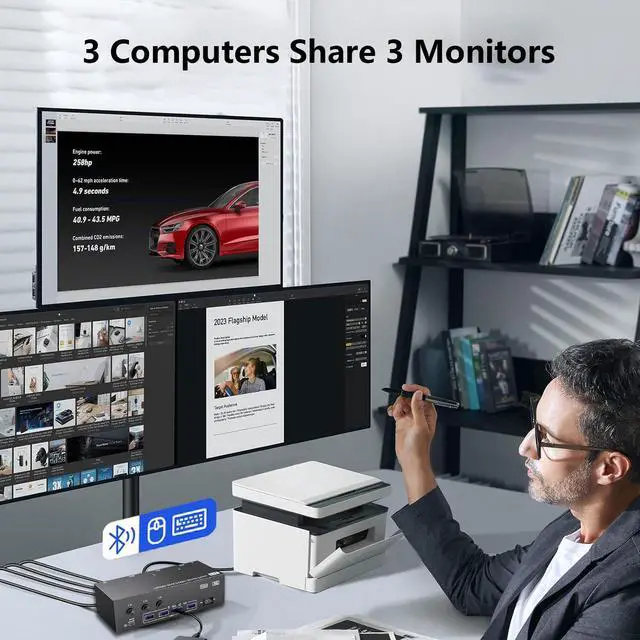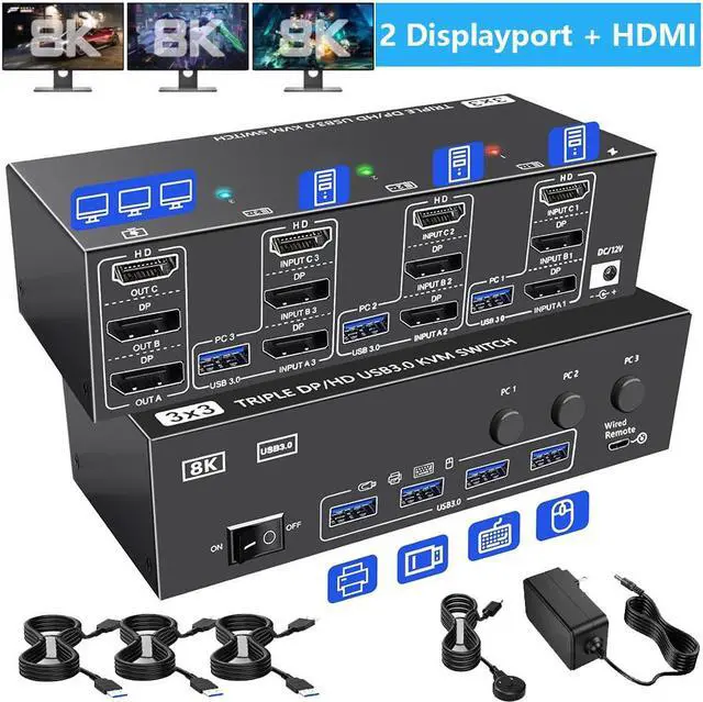 ![Alt view image 6 of 7 - SMA [2 Displayport + HDMI] Triple Monitor USB 3.0 KVM Switch 3 Monitors 3 Computers, 8K@60Hz DisplayPort 1.4 + HDMI2.1 KVM Switch for 3 PC Share 3 Display and 4 USB 3.0 Devices, Wired Remote Included](https://c1.neweggimages.com/productimage/nb640/AMYDS2405220EXR1FA1.jpg)