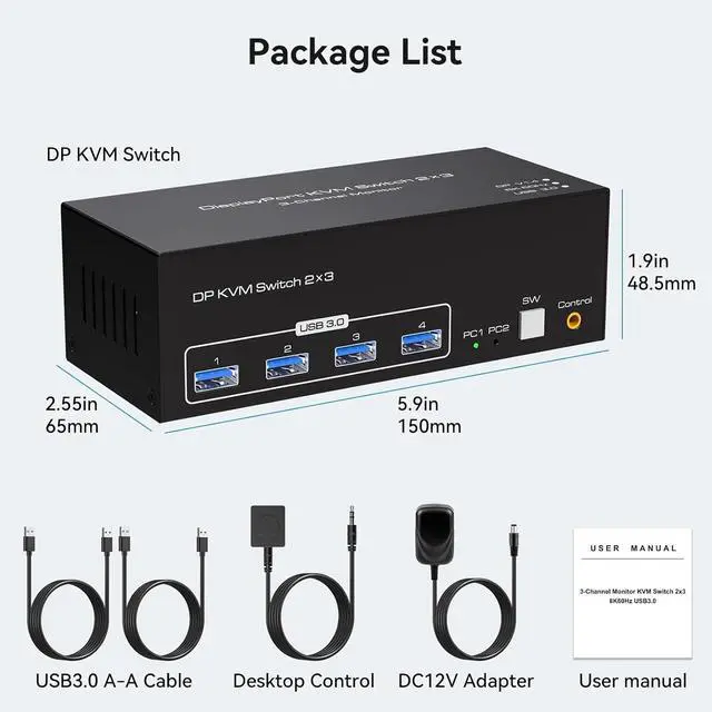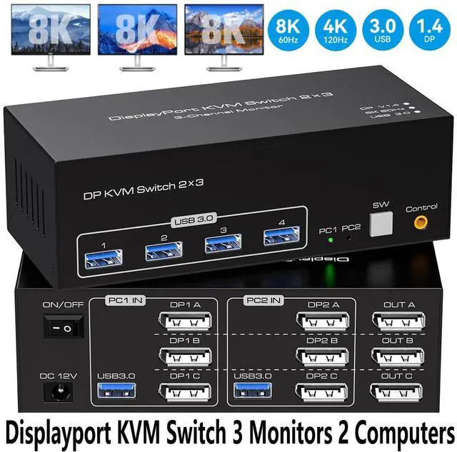 The Display port KVM switch with DP port version 1.4 supports resolutions up to 8K@60Hz 4K120Hz. ultra HD video images are crystal clear, enjoy blockbuster effects at high frame rates. And it is also backward compatible with resolutions such as 4K@60Hz, 3D, 1080P and 720P.