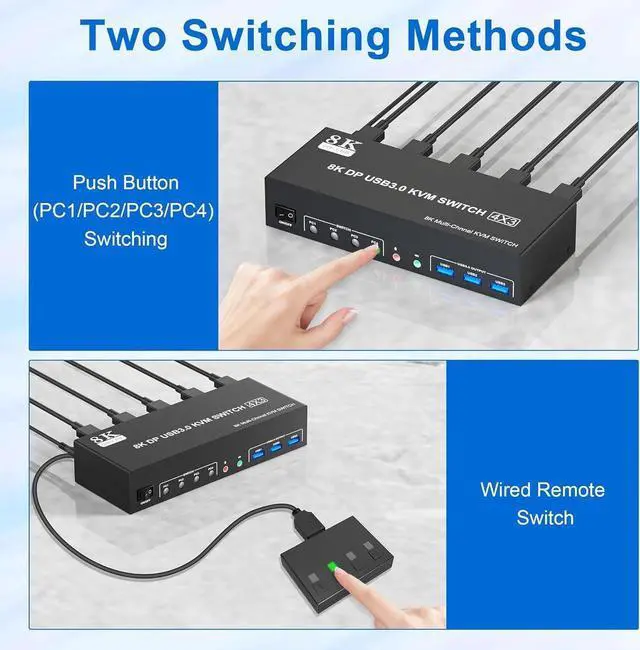 - Please note: This kvm switch displayport does not support hotkey switching.