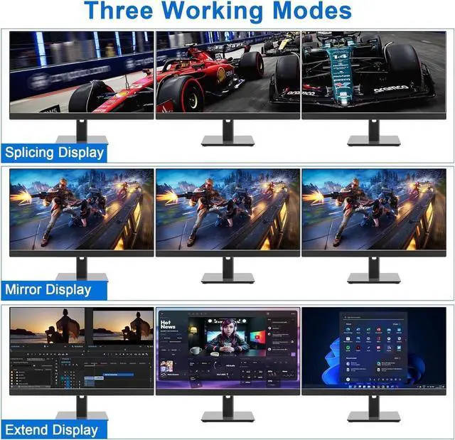 - Triple monitors output support up to 4K@60Hz for extended and mirrored display