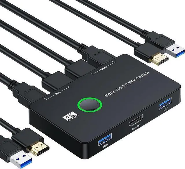 USB 3.0 HDMI SwitchThe USB 3.0 port of this KVM switch supports ultra-fast USB 3.0 data transfer rates of up to 5Gb/s (10 times faster than USB 2.0 ), provides high-bandwidth support, allows you to enjoy efficient and smooth data transmission between the computer and external devices. (backward compatible with USB 2.0 and USB 1.1 devices. )