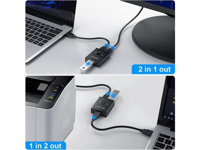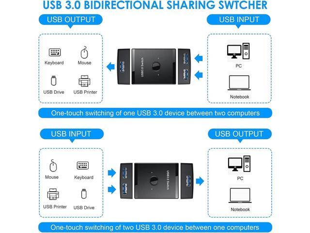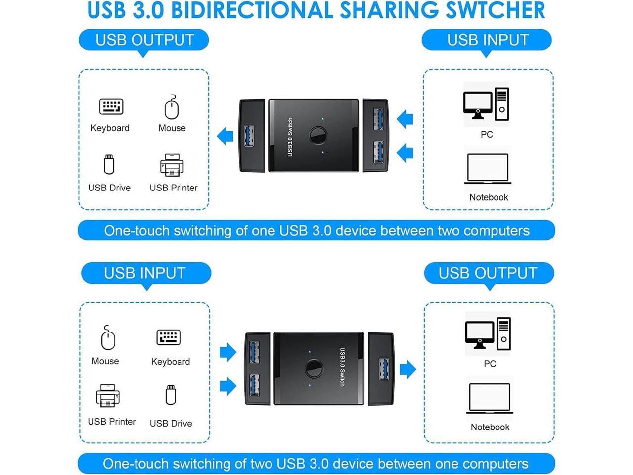 USB 3.0 Switch Selector, Bi-Directional USB Switch 2 in 1 Out / 1 in 2 Out, USB Switcher Adapter for Keyboard Mouse Scanner Printer, USB KVM Switch Compatible with Mac/Windows/Linux