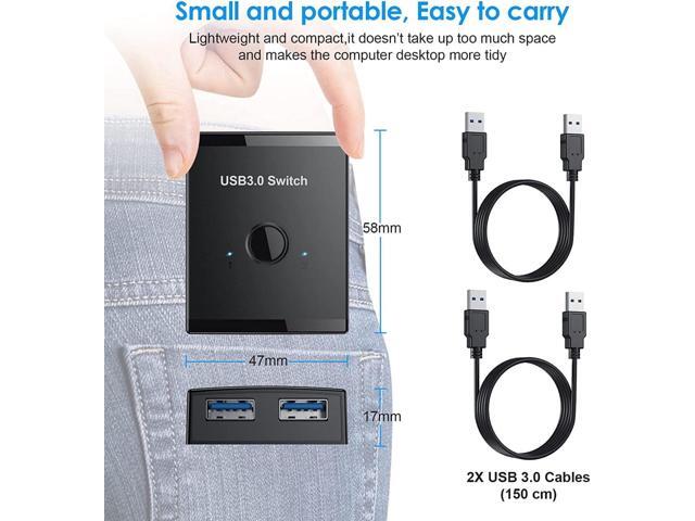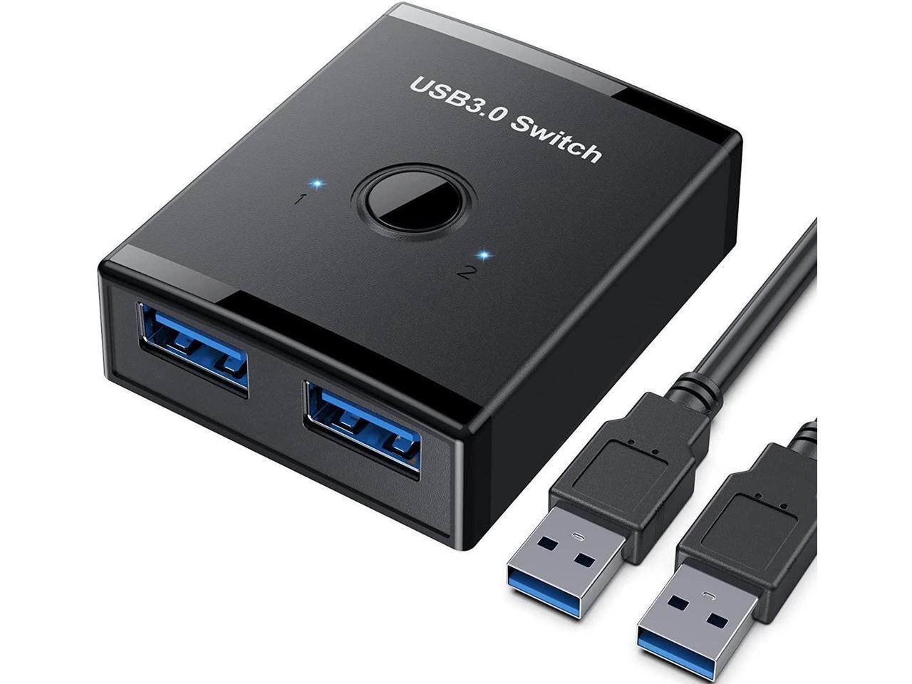 The USB 3.0 switch allows sharing 1 USB device between two computers or sharing 1 computer between 2 USB devices, such as a printer, scanner, mouse, keyboard, card reader, flash drive, and other USB devices. Package comes with 2 Pack USB 3.0 cable.
