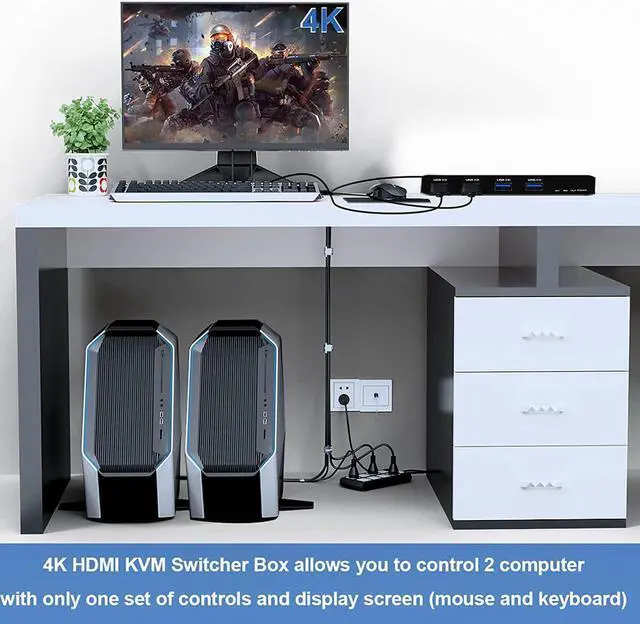 Ultra HD 4K@60Hz Visual Enjoyment - This HDMI USB KVM switch supports resolutions up to 4K@60Hz, making the image display more fascinating and vividly colorful. It also comes with 4 USB 3.0 ports, presenting ultra-fast data transfer and quick response to commands