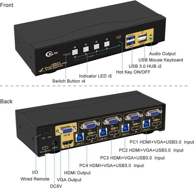 Dual Monitor KVM Switch Dual Monitor HDMI KMV Switches KVM Dual Monitor KVM for Mac KVM Switch USB 3.0 KVM Switch 4K