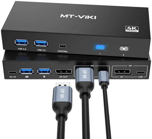 MT-VIKI Displayport KVM Switch allows 2 computers to share a monitor and 4 USB 3.0 devices such as a set keyboard, mouse, hard drives, U disk and printer. NOTE: Must Connect USB A to C cables for the Power Supply and data transfer. It is NOT a USB-C KVM Switch
