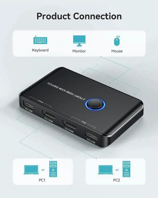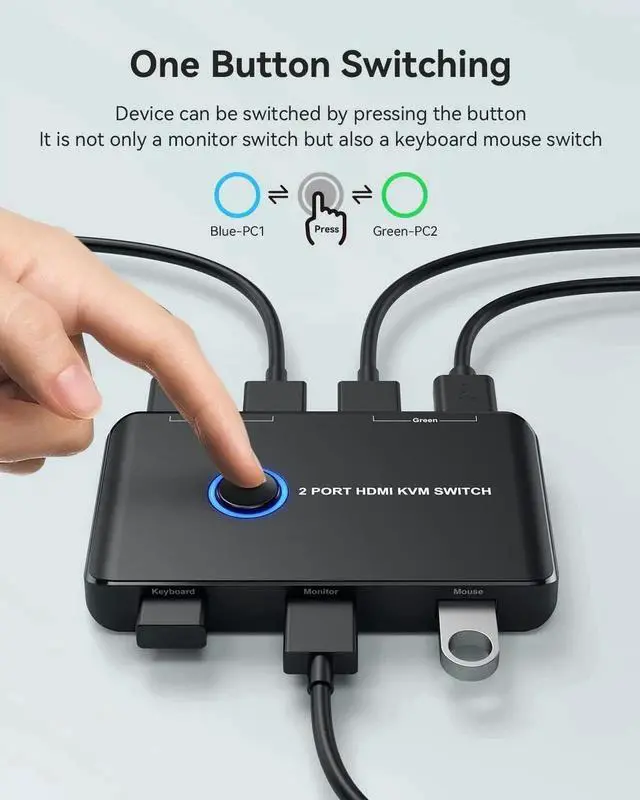Our kvm switch save your desk space when you need to use two computers, you can easily switch between 2 computers and usb devices without all the clutter. No longer have to go thru the hassle of swinging the hdmi cable and usb cable back and forth anymore, improve your work efficiency greatly.