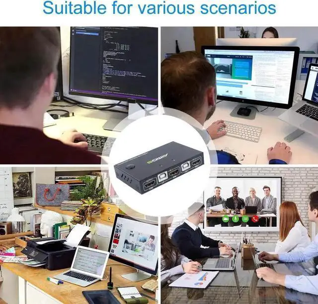 • [Advantage] Port switching via remote switch button and Body button. Plug and play, no driver is needed. Support wired or wireless keyboard / mouse. Powered by USB-B cables, no power adapter required. Fully Compliant with HDMI1.4a ,HDCP.