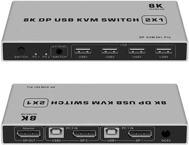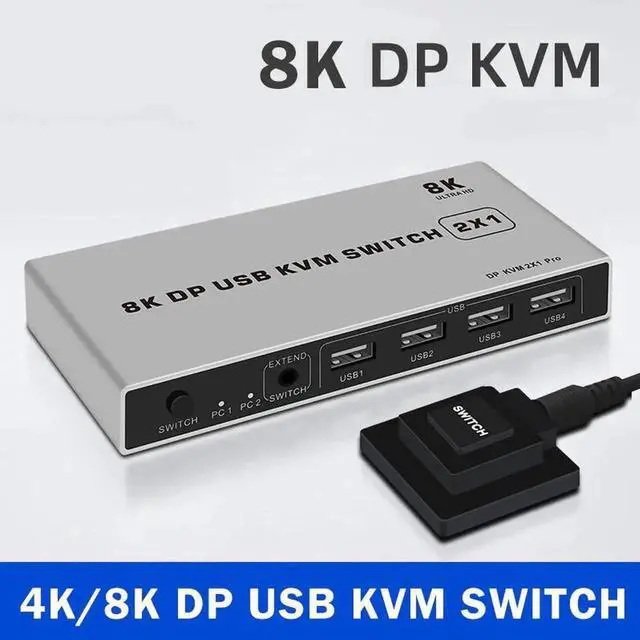 1. 8K Dual-port DP USB KVM Displayport KVM Switch 4K@144hz 2-port USB KVM 8K Displayport 1.4 Switch KVM mouse&keyboad supported