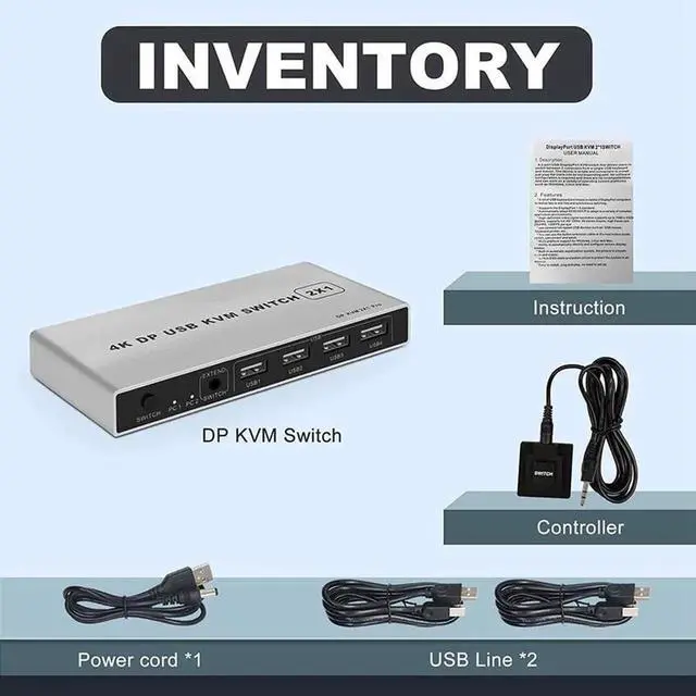 *A set of USB keyboard and mouse to control 2 DsplayPort computers to realize two-in-one free and synchronous switching;