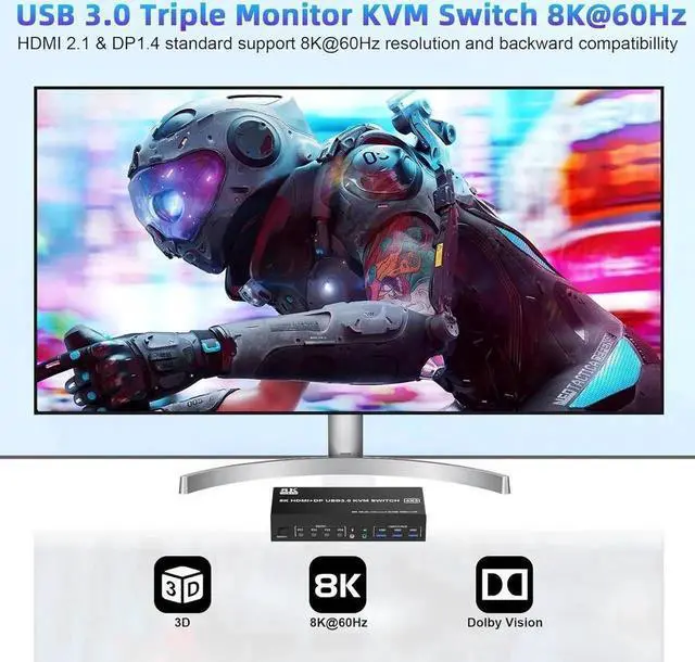 [Ultra HD 8K@60Hz] KVM Switch DisplayPort: support resolution up to 8K@30Hz/4K@144Hz. HDMI Port: support resolution up to 8K@60Hz/4K@60Hz/2K@60Hz and backward compatible with lower resolution.